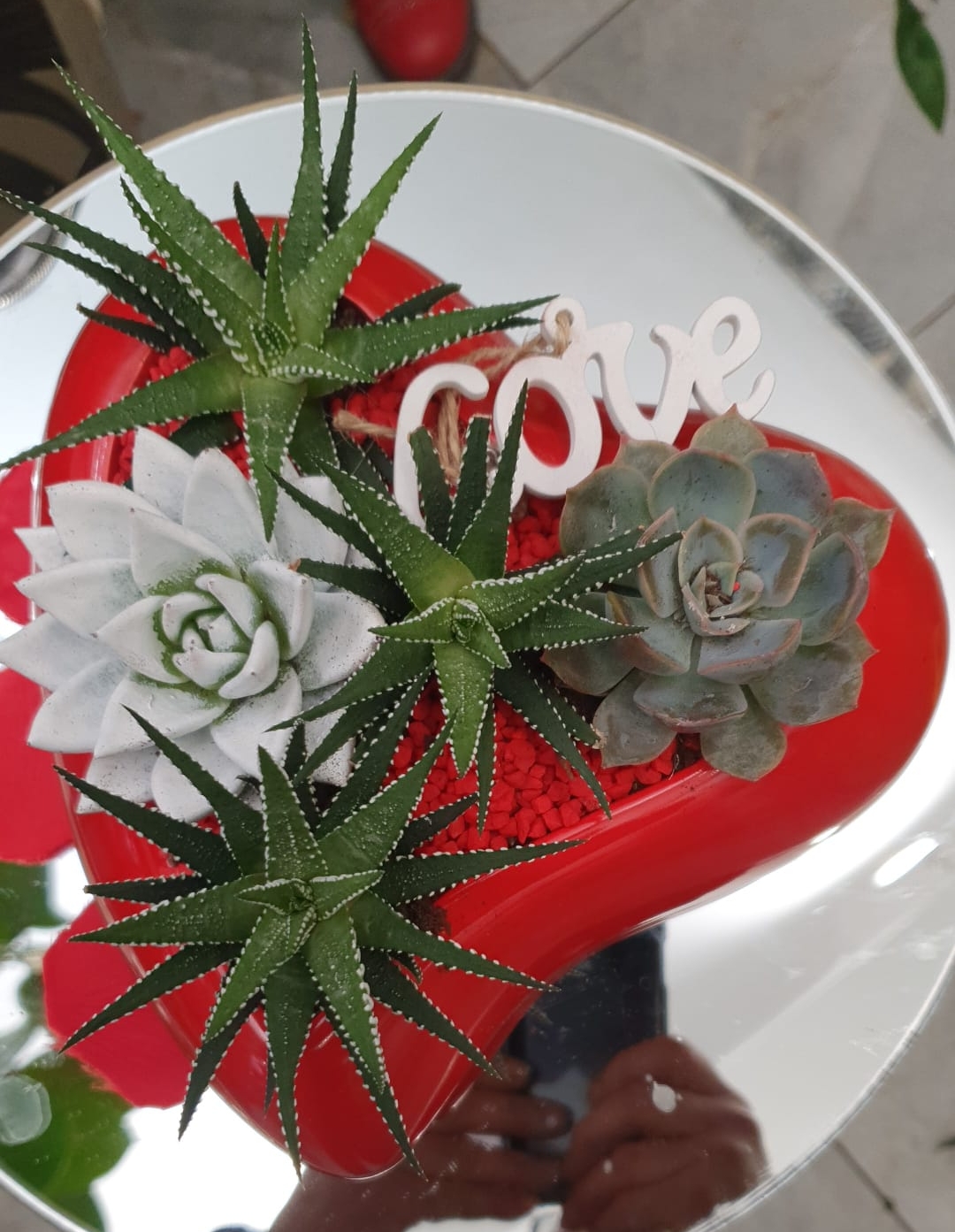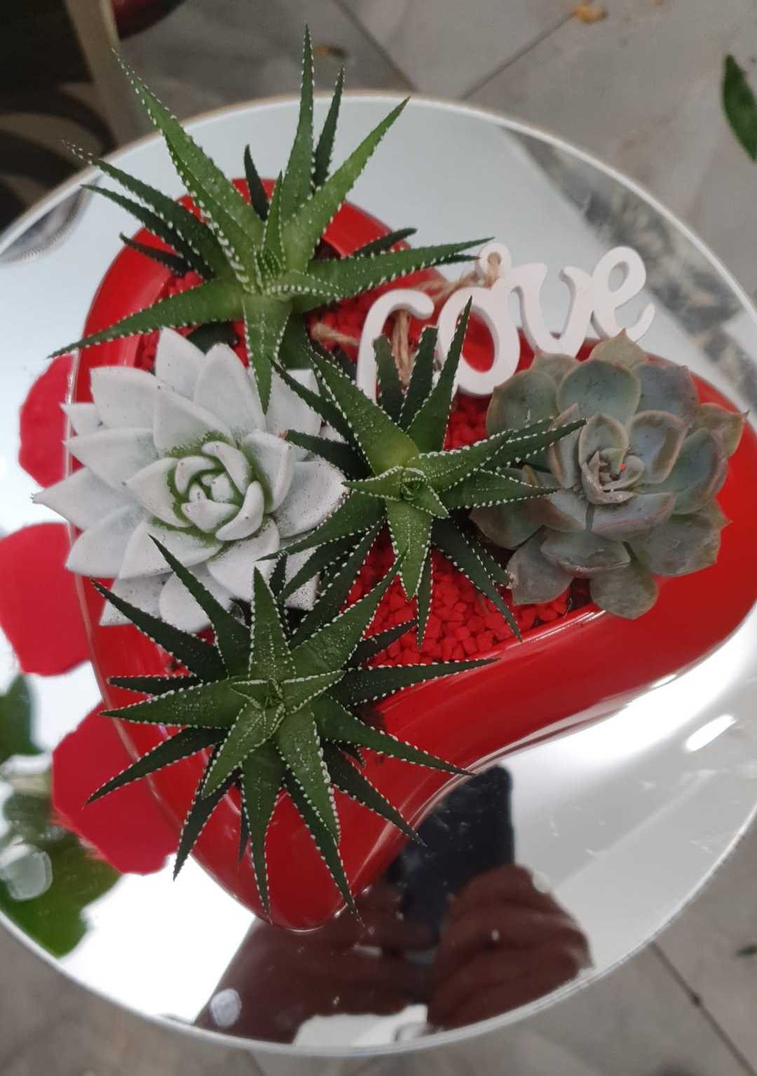 Cuore rosso in ceramica con composizione di n. 5 piante grasse